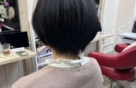 後頭部の丸みが強調され、ショートスタイルがより女性らしく、洗練された印象を与えています。